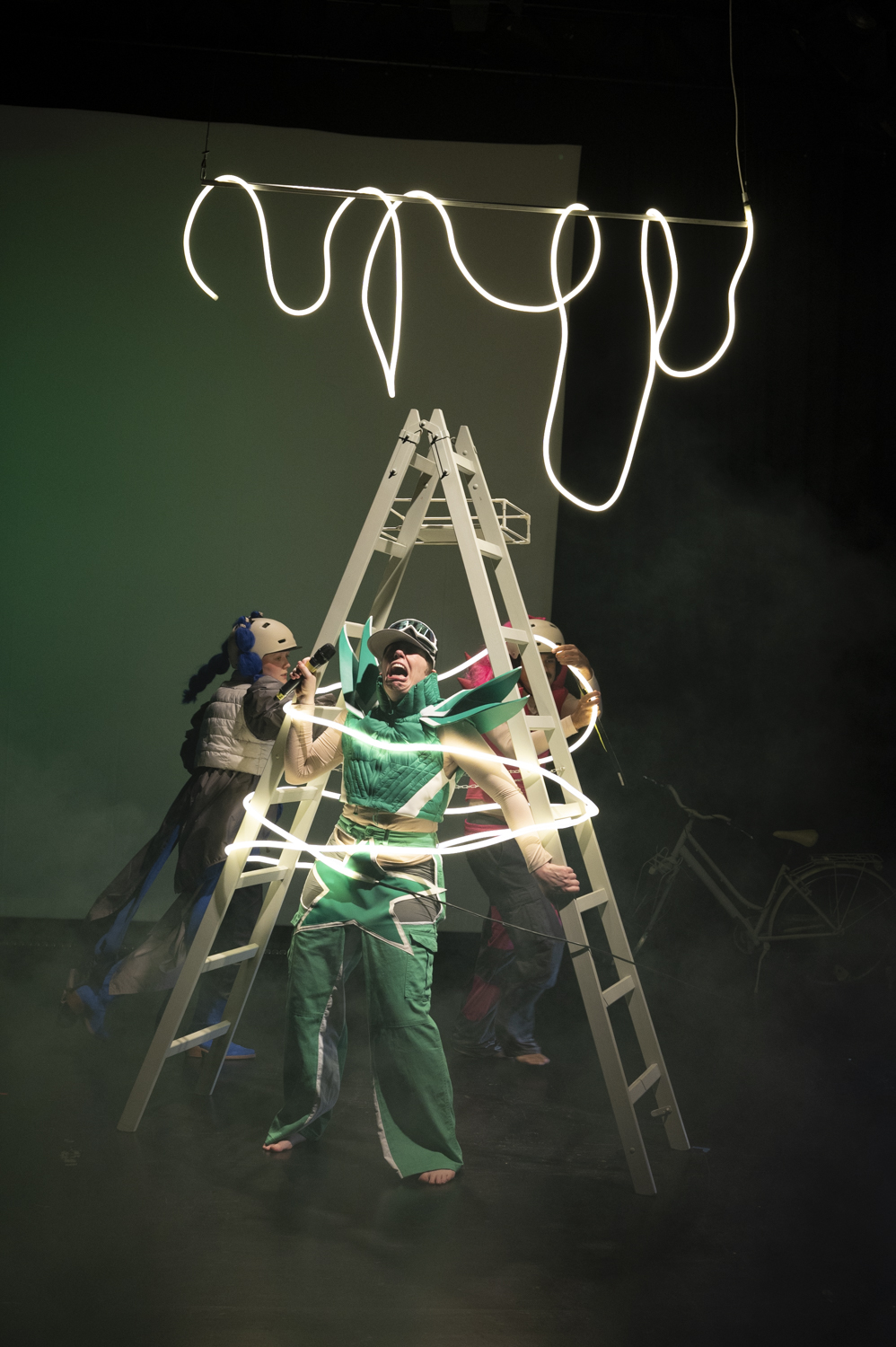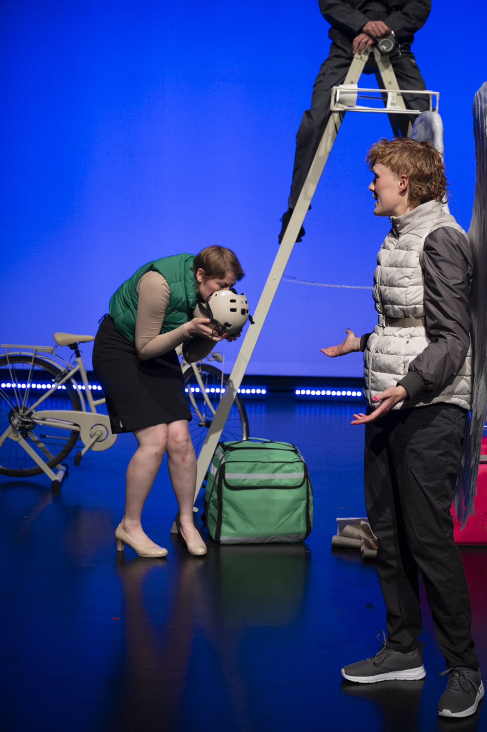 Der mini ego club verwebt Pop und Politik, befragt von Körper und Kapital – rotzig, smart und alltagsnah. In LIEFERHELD*INNEN geht es um die Prekarisierten der Gig Economy. Die strampelnden Menschen, die für miesen Lohn und wenig Trinkgeld Kopf und Kragen im Straßenverkehr riskieren, um anderen Essen und Einkäufe zu bringen. Die Performer*innen steigen selbst in den Sattel und erschaffen neue Held*innen-Sagen gegen die politische Unsichtbarkeit. Zwischen Foyer, Bühne und Straße sind sie der Wirklichkeit stets einen Schritt voraus.